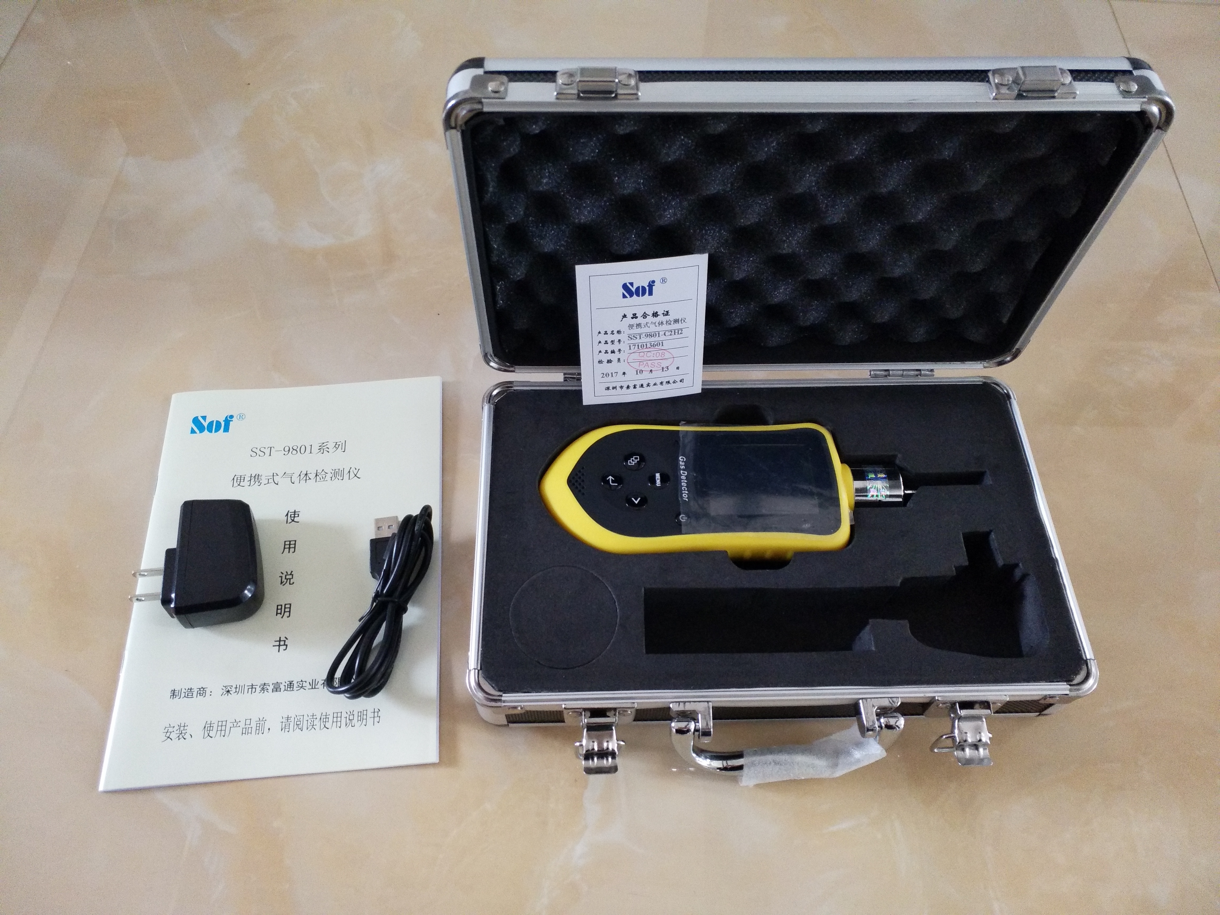 - SST- 9801系列氣體檢測儀是索富通實業(yè)有限公司于2017年推出的一款智能型便攜泵吸式氣體檢測儀;是全球首款搭載智能光感控制、集氣體、溫度、濕度、時間、吸氣泵、報警為一體的多功能氣體檢測報警裝置;客戶只需一鍵開機,無需任何化學(xué)試劑,即可實時對空氣中的被測氣體濃度進行檢測;當(dāng)現(xiàn)場被測氣體濃度達到預(yù)設(shè)的報警點時,會自動發(fā)出聲光報警,并有溫馨文字提示;產(chǎn)品采用當(dāng)前最先進的氣體檢測傳感技術(shù),可快速出檢測結(jié)果。SST-9801系列氣體檢測儀具有設(shè)計前衛(wèi)、操作簡便、測量精準(zhǔn)、堅固耐用的特點;警示“黃”配以磨砂“黑”色調(diào),沉穩(wěn)醒目;人體學(xué)“十字型”按鍵設(shè)計,操控方便;2.4英寸超高清液晶彩色屏幕,美觀大方;高強度 ABS+ PC塑膠外殼,耐沖擊、耐酸、耐堿、耐寒、耐熱、易阻燃;32位納米級微處理器搭配16位超高ADC采集芯片,計算速度更快、數(shù)值更精確;本安型電路設(shè)計、安全可靠;內(nèi)置世界著名吸氣泵品牌-德國THOMAS 微型真空泵,提供穩(wěn)定、持久氣流;國外原裝進口氣體傳感器,精度高、穩(wěn)定性強、誤差率低、直線性好;2800mA大容量鋰電池,為氣體檢測提供持久續(xù)航;PPM 與mg / m3檢測單位自由切換,簡單明了;中英文操作界面,適用所有人群;還可選配數(shù)據(jù)存儲功能,輕松存100,000條數(shù)據(jù)。支持本機查看;并可通過電腦將數(shù)據(jù)導(dǎo)出,進行打印、編輯、圖表顯示等。