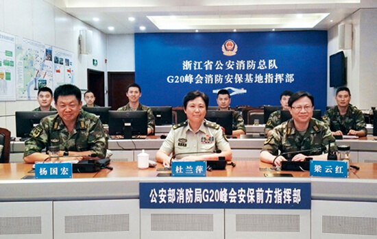 G20峰會(huì)消防安保要求如此之高、任務(wù)如此之艱巨,公安消防部門是如何應(yīng)對(duì)這場(chǎng)史無(wú)前例的挑戰(zhàn),采取了哪些科學(xué)有效的措施,是怎樣打贏這場(chǎng)特殊戰(zhàn)役的?帶著這些問(wèn)題,本刊記者專訪了此次峰會(huì)消防安保前方指揮部副總指揮,公安部消防局副局長(zhǎng)、總工程師杜蘭萍少將。